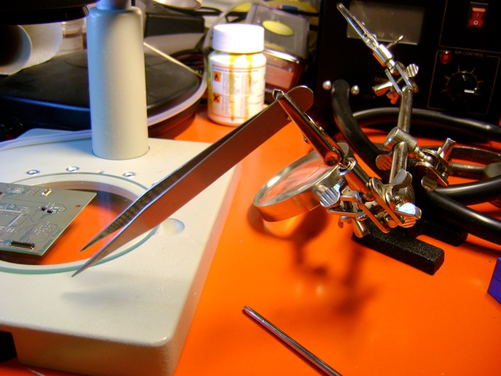 f. Doing manual pick and place (with a small tool to help having a calm hand)