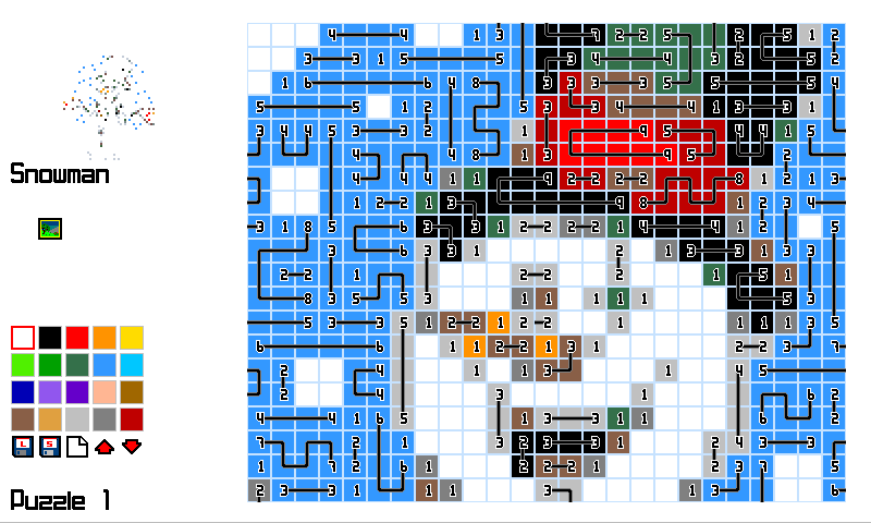 Puzzles can be imported as images but the chains have to be created manually (the numbers are automatically placed at the start and end of chains and updated as the chains increase). LMB draws the chains RMB paints the cell in the selected colour.