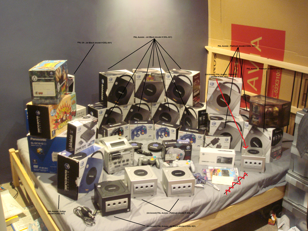 WOW!!! That is a lot of Gamecubes... too bad they are all PAL, I live in an NTSC region so I can't buy one. If I had all of those Gamecubes, I would conduct some experiments on a couple of them (like installing mod chips, maybe wire SNES or PS controllers to the Gamecube controllers... run a SNES or NES emulator... maybe a Genesis/Mega Drive or SMS emulator) but that's just me...