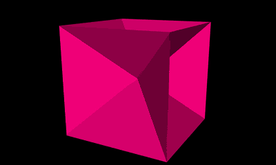 I'll stick with the tris, and assume for now that we can only see one side of a tri. On which basis, here's "Magenta Cube".