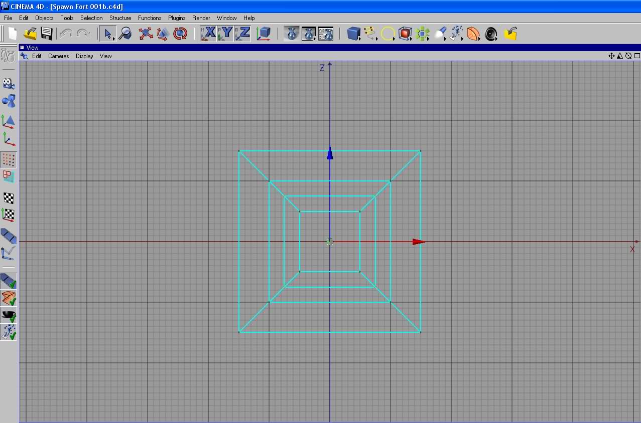 I may tinker with a few models that will be easier to make with Quads than tris on the basis that I quite enjoy making these simplistic models. Taking a 2D idea and re-imagining it is quite fun... for example, if we take the "concentric squares" image from GridWars - the graphic that spawns loads of "pnkpinwheels" - we could easily extend that to this: