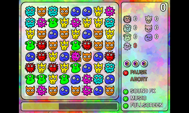 Monsterz is a little arcade puzzle game, similar to the famous Bejeweled or Zookeeper.