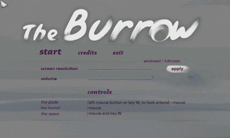 The Burrow is a short interactive experience. The narrative develops through the player's interaction with the game's world. Every exchange is significant and becomes a part of the narrative. The Burrow has no single meaning as it appeals to the player's personal experience and feelings. The gameplay contains no opponents, enemies, or competition.