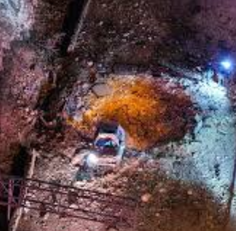 First thing I thought is they were driving and the missile fell a little behind the car, but what do I know?Wondering if they drove over the hole in the highway instead of being hit while driving or being parked.